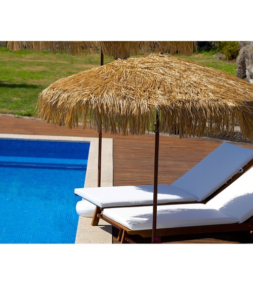 Produit à usages professionnels et particuliers. Parasol rond avec volants. Toile à franges en polyester marron clair naturel. Mât en acier finition bois. Ouverture push-up. Protection UPF50+. Livré avec housse de transport. Pieds et dalles de parasol vendus séparément.DIMENSIONSDiamètre : 200 cmHauteur : 189/261 cmTube : 2,9/3,2 cm de diamètreBaleine : 0,6 cm de diamètre Choisissez les parasols professionnels MANILA pour aménager votre salle de restaurant ou votre terrasse. Ce produit répond aux exigences de la norme UPF50+ en matière de protection contre la radiation UV-A et UVB.