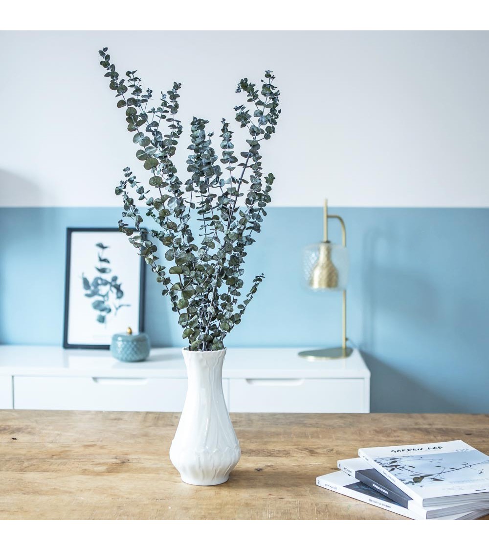 Relevez votre décoration d'intérieur pendant de nombreuses années grâce à cette botte d'eucalyptus baby stabilisé.Nos plantes sont naturelles. Elles ne s'exposent qu'en intérieur à l'abris des courants d'air et de la lumière directe du soleil. Evitez également de les placer dans des pièces très humides. Manipulez-les avec délicatesse (le séchage et la stabilisation fragilisent les plantes). Elles ne requièrent aucun entretien, aucun arrosage, aucune luminosité particulière. Elles gardent leur fraîcheur et leur souplesse pendant plusieurs années.A placer dans un vase sans eau.Caractéristiques techniques :Bouquet de 150gOrigine : FranceCouleur : VertLongueur min (cm) : 55Longueur max (cm) : 65