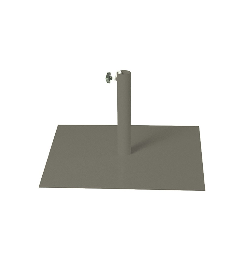 Produit à usages professionnels et particuliers. Pied de parasol en acier laqué taupe. Orifice pour le drainage de l'eau. Tige filetée avec languette-frein intérieure pour éviter tout contact direct de la vis avec le mât du parasol.DIMENSIONSL 62,5 x l 62,5 x H 35 cmTube : 4,8 cm Choisissez les pieds de parasols professionnels FLAT pour aménager votre salle de restaurant ou votre terrasse.