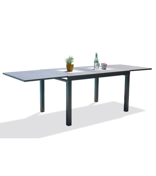 Table de jardin en aluminium gris anthracite avec rallonge intégrée.DIMENSIONSL 135/270 x l 90 x H 76 cm