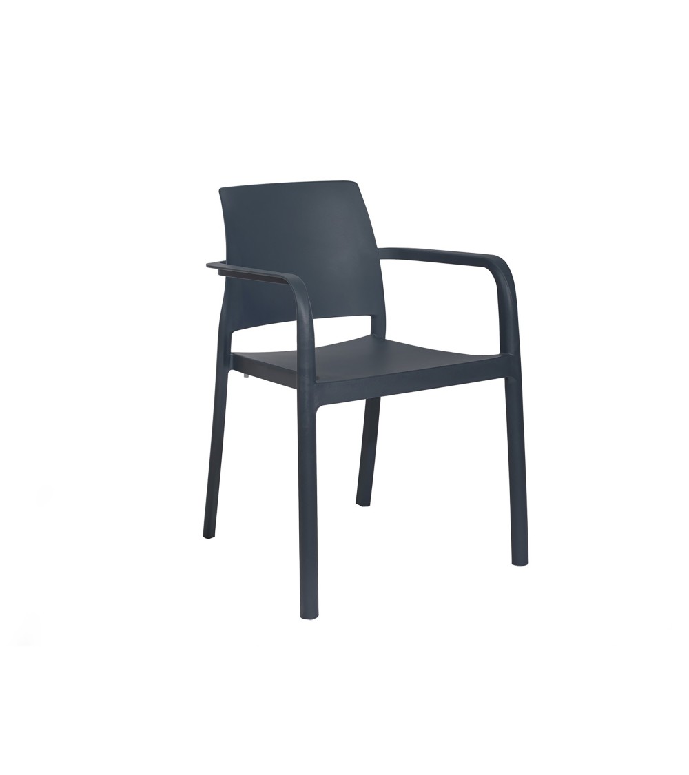 Produit à usages professionnels et particuliers. Fauteuil de jardin léger, empilable et 100% recyclable en polypropylène gris anthracite. Embouts antidérapants. Résistant aux chocs, au gel et aux UV.DIMENSIONSL 56 x l 54 x H 79,5 cmHauteur sol-assise : 46 cmHauteur sol-accoudoir : 66 cm Choisissez les fauteuils professionnels DOCK pour aménager votre salle de restaurant ou votre terrasse. Ce produit répond aux exigences des normes EN 581-1 et EN 581-2 en matière de sécurité, résistance et stabilité.