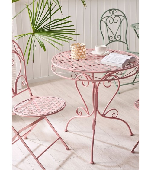 Une belle table bistro conçue avec une touche vintage constitue un ajout accrocheur à chaque jardin ou balcon. Son cadre rose, revêtu de poudre et orné de magnifiques volutes ouvertes, dégage une atmosphère romantique. Fabriqué en métal, ce meuble est facile à nettoyer et, avec un entretien approprié, il durera de longues années.