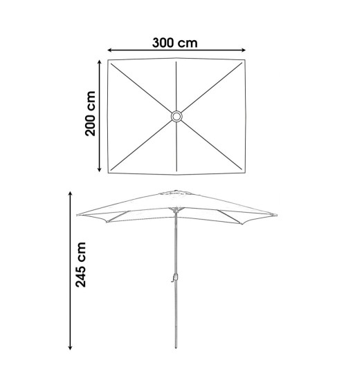 Parasol 200 x 300 girsTrès pratique avec son pied inclinable, ce parasol est idéal pour vous protéger du soleil.Caractéristiques techniques :Couleur de la toile : gris.Mât Ø 48 mm.Dimensions du parasol ouvert : L 200 x lg 300 x Ht 245 cm.Pied de parasol non fourni.Produit livré monté.