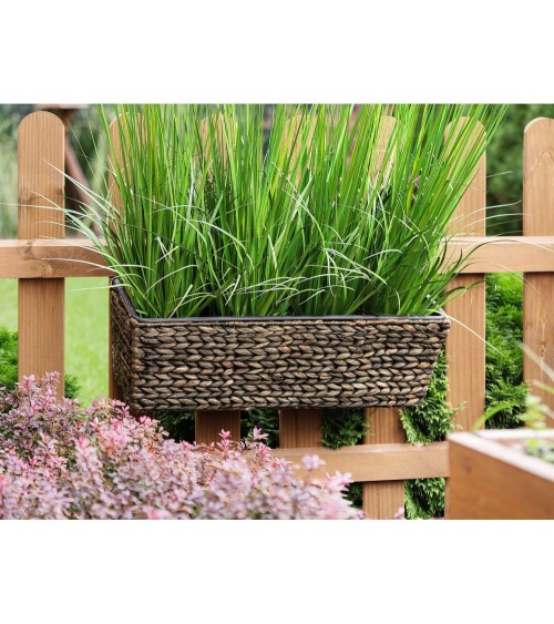 Fixez cette balconnière sur la balustrade de votre terrasse pour vous entourer d'une oasis d'été et profiter de la beauté de vos plantes. Particulièrement pratique, ce set se compose de d'un pot (insert) en polypropylène noir et d'un cache-pot en fibres de jacinthe naturelles de couleur marron. Les supports peuvent être facilement retirés si nécessaire, vous pouvez donc également utiliser cette jardinière comme pot de fleurs de rebord de fenêtre ou un accessoire de décoration pour votre chambre ou salon. De style bohème tendance, ce superbe pot de fleurs est résistant aux intempéries et peut être utilisé aussi bien à l'extérieur qu'à l'intérieur.