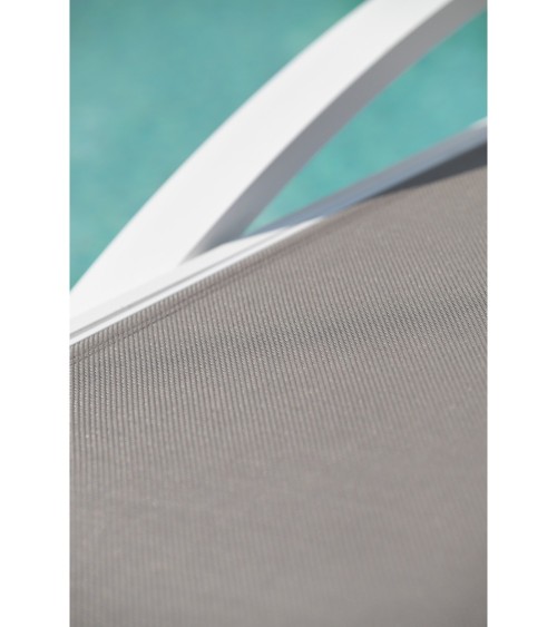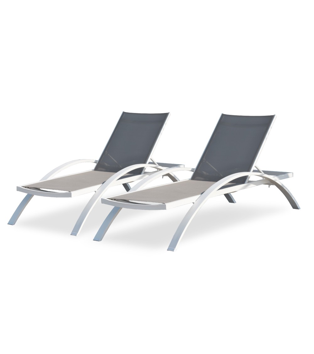 Lot de 2 bains de soleil en toile plastifiée taupe et aluminium blanc