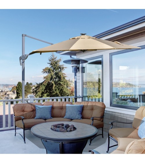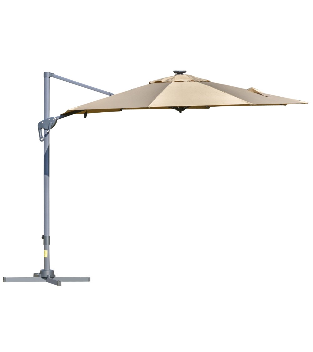 Parasol déporté LED octogonal inclinable pivotant 360° beige
