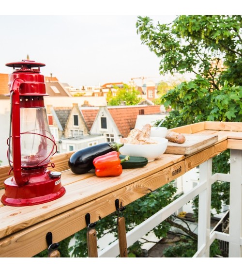Le Balkonbar est un outil pratique et facile à utiliser, voir notre tutoriel vidéo. Le kit se compose d'un ensemble de planches, d'un support et de matériel de fixation. La Balkonbar mesure 90 cm de long, 30 cm de large et dépasse d'environ 15 cm la balustrade de votre balcon à l'avant et à l'arrière .Propriétés des matériaux : Le bambou est une herbe qui pousse plus vite que toute autre culture dans le monde. Cela le rend plus écologique par rapport aux autres types de bois. Le bambou est également trés résistant grace à ses fibres. Les nouvelles technologies de traitement ont fait du bambou un matériau de construction parfait pour l'extérieur. Le type que nous utilisons pour notre Bamboo Balkonbar est un composite de bambou, de cire et de plastique recyclé. Cela fait de la Bamboo Balkonbar un produit trés durable, qui ne nécessite que peu d'entretien. Le composite de bambou contient un matériau naturel et finira par devenir gris. La vitesse à laquelle cela se produit dépend de l'orientation de votre balcon, la météo, etc...Type de balustrade : Murale : Une confirmation est également disponible pour les murs. Dans cette construction, le mur est en quelque sorte serré entre deux supports. La construction convient aux murs d'une largeur de 7 à 12,5 cm. Les parois du mur doivent être identiques. Veuillez vérifier les dimensions de votre balustrade
