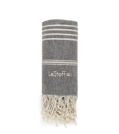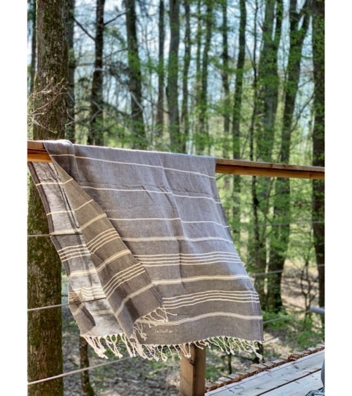 Serviette fouta 50% coton peigné et 50% chanvre, certifiée sans substances nocives. Robuste et hyper absorbant.