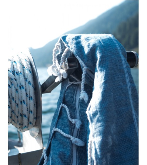 Serviette fouta 50% coton peigné et 50% chanvre, certifiée sans substances nocives. Robuste et hyper absorbant.