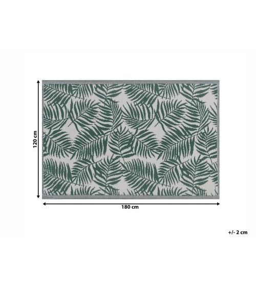 Parfait pour améliorer le look de votre espace extérieur, ce tapis résistant peut être utilisé dans toute une variété d'endroits. Doté d'un motif de feuilles de palmier très à la mode, dans une nuance de vert agréable, il se marie parfaitement avec plusieurs décors, aussi bien rustiques et bohème que modernes. Tout en apportant une vague de fraîcheur tropicale dans votre jardin, terrasse ou balcon, ce joli tapis peut être aussi utilisé à l'intérieur de votre maison ou vous servir d'assise pendant vos pique-niques en famille ou vacances à la plage.