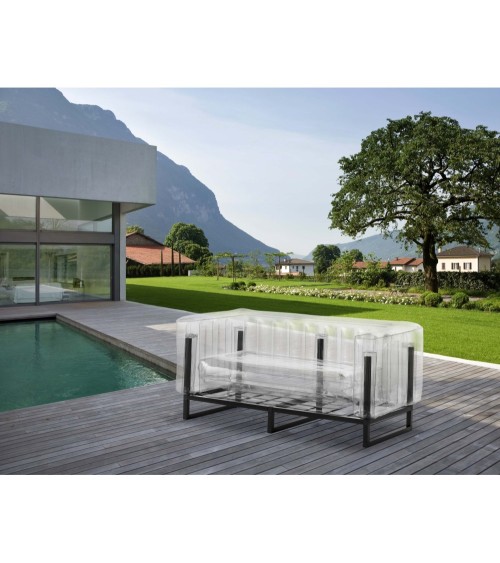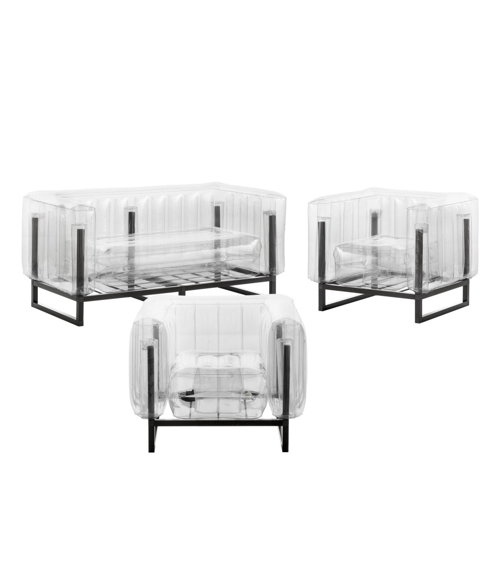 Produit à usages professionnels et particuliers Salon de jardin moderne au design français intemporel, produit en matériaux hyper résistants et éco-responsables, le style épuré et fun de votre salon de jardin Yomi Eko trouvera aisément sa place au bord de la piscine ou sur votre terrasse. Assemblez les fauteuils, canapés et tables basses d'extérieur Mojow, pour créer votre salon de jardin design moderne, élégant et original.Dimensions : Canapé: 151x76,5x69,5cm / Poids: 14,3 kg - Fauteuil: 83x76,5x69,5 cm / Poids: 9,6 kg.TPU : Nouvelle matière recyclable et biodégradable, inodore et ne contenant pas de chlore. Le TPU est une matière « froide ». Les modèles transparents ont la particularité de laisser passer les rayons du soleil, ce qui permet de ne pas sy brûler lorsquils sont exposés en plein soleil !Entretien facile: Nettoyer à l'eau savoneuse. Pas de produit chimique. Produits livrés démontés dans de petites valises très facile à transporter et à stocker. Une pompe est offerte à chaque commande.Les points forts :* Ideal en intérieur comme en extérieur* Très facile et rapide à monter / ranger* Facile d'entretien* Ne chauffe pas avec le soleilCe mobilier gonflable Design est très léger et peut se déplacer facilement ce qui sera parfait pour équiper vos bureaux, vos halls d'entrées ou bien même apporter une touche Fun et Coloré pour vos évenements.Seulement quelques barres à assembler, un matelas à gonfler et vous voila prêt à profiter de votre Mojow.Structure : Aluminium noirMatelas gonflable : TPU (éco-responsable et biodégradable)Hauteur d'assise : 41cm