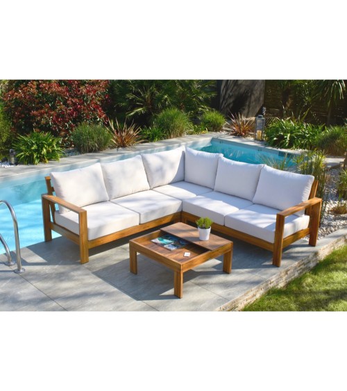 Salon de jardin d'angle 5 places en aluminium effet bois