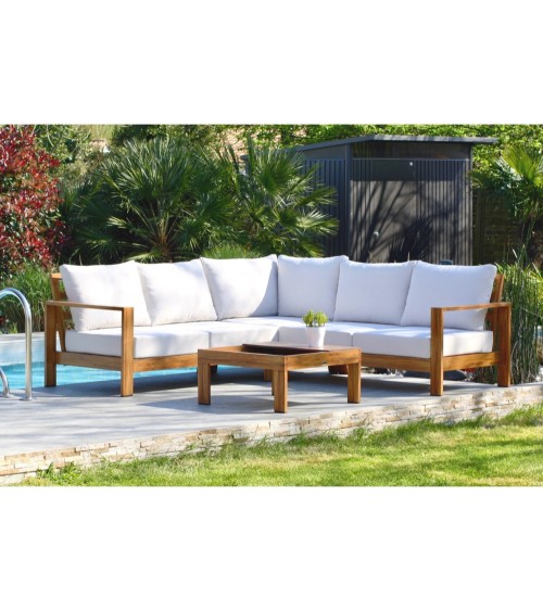 Produit à usages professionnels et particuliers. Salon de jardin 5 places en aluminium effet bois composé de 2 banquettes 2 places, d'une table basse et d'un module d'angle. Table basse de jardin carrée avec plateau amovible. Coussins déhoussables en toile 100% polyester gris.DIMENSIONSBanquette : L 150 x l 85 x H 79 cmAngle : L 85 x l 85 x H 79 cmTable : L 75,5 x l 75,5 x H 36 cmChoisissez le salon de jardin professionnel MAJORQUE pour aménager votre salle de restaurant ou votre terrasse.