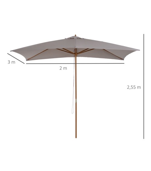 Ce grand modèle de parasol droit rectangulaire dim. 3L x 2l x 2,5H en bois vous offrira une protection optimale contre le soleil. Avec la montée des températures, ce parasol vous permettra de profiter de votre jardin, terrasse ou balcon tout en restant au frais à l'ombre.Caractéristiques : - Grand parasol droit rectangulaire idéal pour une utilisation dans votre jardin, sur votre terrasse, balcon, etc...- Composé de 6 entretoises doublées (soit 12 au total) en bois de bambou, robuste et stable- Tissu de polyester imperméabilisé haute densité 180 g/m² pour une utilisation pérenne- Mât démontable en 2 parties pour plus de commodité de rangement et transport si besoin- Fixation en position ouverte grâce à un mécanisme de verrouillage de sécurité à goupille 4 positions- Ouverture fermeture manuelle du parasol- NOTE : pied / base de parasol non inclusSpécifications : - Couleur principale : gris- Matériaux principaux: bois de bambou, tissu de polyester 180 g/m² imperméabilisé- Dimensions totales: 3L x 2l x 2,5H m- Diamètre mât : 3,8 cm- Réf. : 84D-057GY