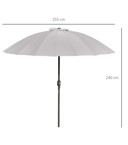 Ce modele de parasol rond inclinable Ø 2,55 m en métal et fibre de verre est grand et robuste afin de vous offrir une protection optimale contre le soleil. Avec la montée des températures, ce parasol vous permettra de profiter de votre jardin, terrasse ou balcon tout en restant au frais à l'ombre.Caractéristiques :- Parasol rond inclinable Ø 2,55 m (hauteur 2,4 m) idéal pour une utilisation dans votre jardin, sur votre terrasse ou balcon- Parasol inclinable qui vous permettra de vous protéger du soleil à toute heure de la journée- Toile en polyester haute densité 160 g/m² : protection optimale contre les rayons UV nocifs du soleil- Parasol disposant également d'une cheminée pour éviter les prises au vent et pour limiter la stagnation de l'air sous la toile- Équipé de 18 baleines en fibre de verre et entretoises : rigidité, robustesse, usage pérenne en toute commodité- Mât 2 parties en métal époxy : déplacement & rangement plus facile, pratique- Système d'ouverture fermeture très pratique grâce à la manivelle- Note : vendu sans le support pied- Recommandation d'usage : Il est déconseillé de laisser votre parasol à l'extérieur par mauvais temps (pluie, vent, neige ou grêle) sauf si protection adaptéeSpécifications :- Couleur : gris- Matériaux principaux : métal, fibre de verre, tissu de polyester haute densité- Ø parasol : 255 cm- Hauteur parasol : 240 cm- Ø mât : 38 mm- Ø entretoises : 6,5 mm- Livraison effectuée en un colis- Réf. : 84D-103GY