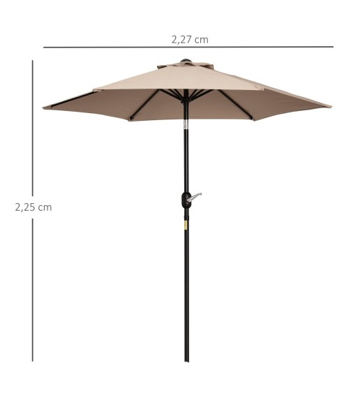 Ce modèle de parasol hexagonal inclinable avec piètement croix inclus en métal est grand et robuste pour une protection optimale contre le soleil. Avec la montée des températures, ce parasol vous permettra de profiter de votre jardin, terrasse, balcon tout en restant au frais à l'ombre. Caractéristiques : - Parasol hexagonal inclinable grande taille dim. Ø 2,27 x 2,25H m vous offrant une grande zone d'ombrage à toute heure de la journée- Parasol design alliant modernité et élégance pour sublimer l'espace extérieur de votre choix : jardin, terrasse, balcon, patio, piscine, etc...- Possibilité d'incliner le parasol en fonction de la hauteur du soleil (3 niveaux d'inclinaison possible au total)- Ouverture et fermeture facile grâce à sa manivelle intégrée- Mât robuste en métal démontable en 2 parties : installation, démontage et rangement plus pratique, facile- 5 entretoises robustes en métal, rigidité et stabilité optimales- Toile en polyester haute densité 180 g/m² vous offrant une protection optimale contre les rayons UV nocifs du soleil- Parasol disposant également d'une cheminée pour éviter les prises au vent et pour limiter la stagnation de l'air sous la toile- Piètement croix métal inclus : stabilité optimum d'utilisation- Montage facile, rapide à l'aide du manuel d'assemblage illustré fourni- NOTE : parasol à installer uniquement sur un sol parfaitement plat et à lester (pied/dalles non fournies, pied/dalles recommandées d'un poids total de 15 Kg minimum) Spécifications : - Couleur principale : beige- Matériaux principaux : métal, tissu polyester haute densité- Dim. totales : Ø 227 x 225H cm- Dim. mât métal : Ø 3,8 cm- Dim. piètement en croix : 100L x 100l cm- Livraison effectuée en un colis- Réf. : 84D-117