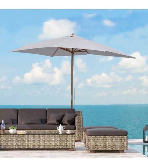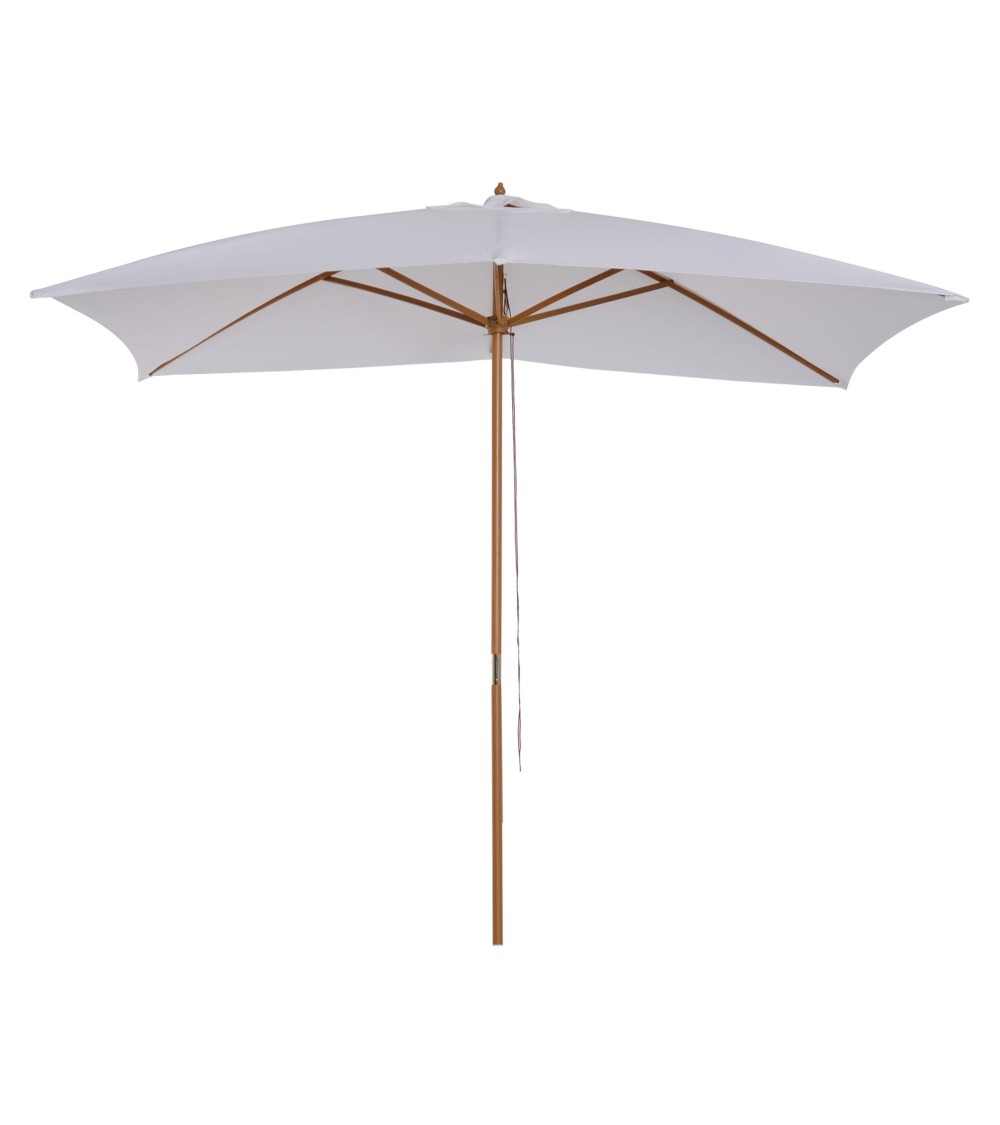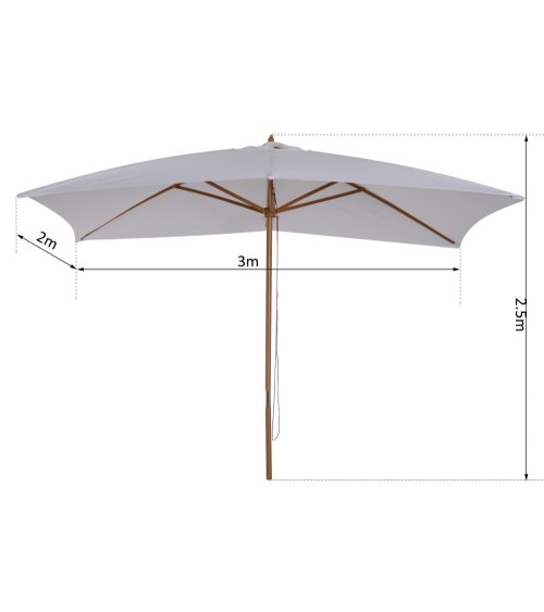 Ce grand modèle de parasol droit rectangulaire dim. 3L x 2l x 2,5H en bois vous offrira une protection optimale contre le soleil. Avec la montée des températures, ce parasol vous permettra de profiter de votre jardin, terrasse ou balcon tout en restant au frais à l'ombre.Caractéristiques : - Grand parasol droit rectangulaire idéal pour une utilisation dans votre jardin, sur votre terrasse, balcon, etc...- Composé de 6 entretoises doublées (soit 12 au total) en bois de bambou, robuste et stable- Tissu de polyester imperméabilisé haute densité 180 g/m² pour une utilisation pérenne- Mât démontable en 2 parties pour plus de commodité de rangement et transport si besoin- Fixation en position ouverte grâce à un mécanisme de verrouillage de sécurité à goupille 4 positions- Ouverture fermeture manuelle du parasol- NOTE : pied / base de parasol non inclusSpécifications : - Couleur principale : blanc- Matériaux principaux: bois de bambou, tissu de polyester 180 g/m² imperméabilisé- Dimensions totales: 3L x 2l x 2,5H m- Diamètre mât : 3,8 cm- Réf. : 84D-057WT
