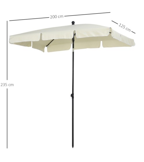 Ce magnifique parasol rectangulaire inclinable de 2 m de diamètre vous offrira une protection optimale contre le soleil. Avec l'arrivée des beaux jours, ce parasol vous deviendra vite indispensable pour profiter de votre jardin, terrasse ou balcon.Caractéristiques :- Parasol rectangulaire inclinable coloris beige clair avec liseret blanc- Toile en polyester haute densité 160 g/m² avec extrémité tombante pour plus de protection et élégance- Grand modèle de parasol 200 cm de long contre 125 cm de large- 4 baleines et contrefiches médianes en fer pour plus de stabilité- Mat 2 parties en fer avec bouton de fixation- Système d'ouverture et fermeture à corde- Vendu sans le support piedSpécifications :- Couleur : beige clair- Diamètre : 200 cm- Toile polyester 160g/m²- Hauteur : 235 cm- Mat en fer de diamètre 28/32 mm- Réf : 84D-016CW
