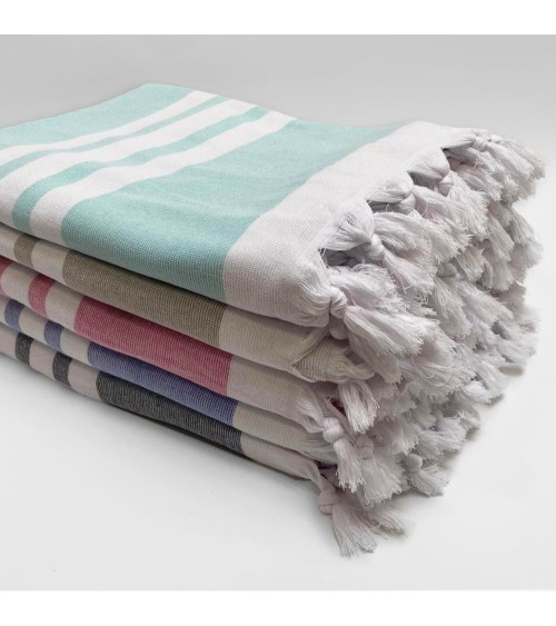 La Fouta doublée éponge se démarque de la Fouta plate traditionnelle car, grâce à son côté doublé éponge, elle remplace aussi bien une serviette éponge dans votre salle de bain qu'au bord des piscines ou sur la plage. La Fouta doublée éponge devient l'accessoire incontournable à avoir chez soi en toute occasion. Dimension : 140x180cmGrammage : 340g/m²Composition : 100 % CotonAspect : recto coton tissé, verso éponge bouclette Finition : franges simplesCe produit peut être réemployé ou recyclé. En fin de vie, pensez à le rapporter dans un point de collecte