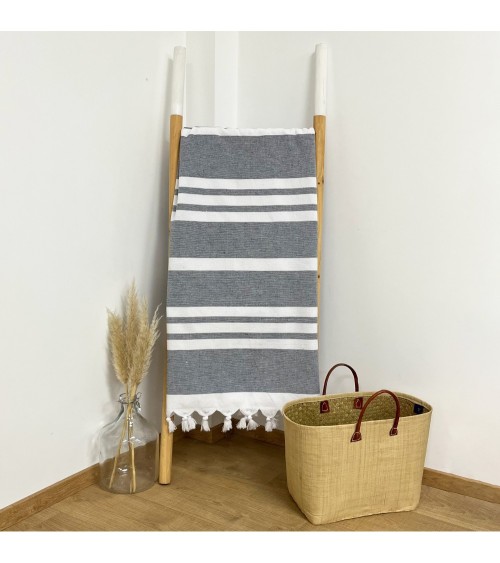 La Fouta doublée éponge se démarque de la Fouta plate traditionnelle car, grâce à son côté doublé éponge, elle remplace aussi bien une serviette éponge dans votre salle de bain qu'au bord des piscines ou sur la plage. La Fouta doublée éponge devient l'accessoire incontournable à avoir chez soi en toute occasion. Ce format XL est idéal pour deux personnes ou pour une sortie à la plage en famille.Dimension : 140x180cmGrammage : 340g/m²Composition : 100 % CotonAspect : recto coton tissé, verso éponge bouclette Finition : franges simplesCe produit peut être réemployé ou recyclé. En fin de vie, pensez à le rapporter dans un point de collecte