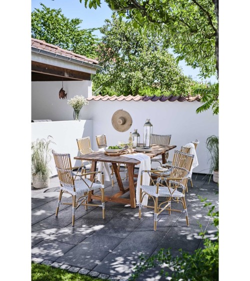 Conçue par Sika-Design, la chaise repas Monique Alu met en avant un style classique très envoûtant de par ses courbes rustiques. Entièrement faite à la main, sa structure est en aluminium, seuls les enroulements et le siège sont faits de fibres synthétiques (polyéthylène). La chaise de repas Monique Alu est dédiée à un usage extérieur et sa forme ergonomique épouse parfaitement les courbes du corps et confère ainsi un confort d'exception. Cette chaise est vendue sans coussin et est également disponible avec des accoudoirs en fonction de vos goûts et de vos envies. Cependant, si vous aimez le rotin naturel, cette chaise existe en version extérieur sous abris, comprenant une structure en rotin naturel et un tressage avec des fibres synthétiques (polyéthylène).