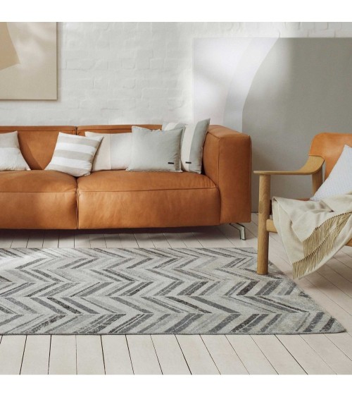 Tapis exterieur tissé plat motif chevrons vintage gris 120x170