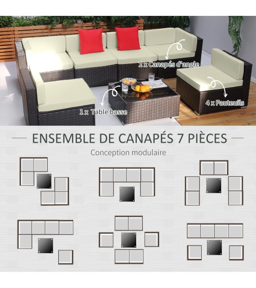 Salon de jardin 7 pièces modulables résine tressée brun foncé