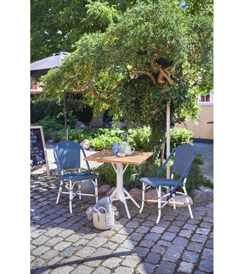 Un chaise style Bistro Parisien au design Danois. De marque Sika-Design, la chaise Sofie Alu est comme la chaise Isabelle Alu, elle présente un vrai style café classique / bistro classique. Imaginez une place recouverte de pavés, de grands et beaux parasols, et des tables élégantes comme les tables Nicole avec des chaises Sofie Alu, dans les plus belles couleurs. Entièrement faite à la main, la structure est en aluminium et les enroulements ainsi que le siège sont en fibres synthétiques (polyéthylène), elles sont donc dédiées à un usage extérieur. Vendue sans coussin, la chaise Sofie Alu est empilable par deux et existe en plusieurs coloris afin de s'adapter à vos préférences, et pourquoi pas assortir les couleurs ce qui est très tendance ! Si vous aimez le rotin naturel, cette chaise existe en version extérieur sous abris, comprenant une structure en rotin naturel et un tressage avec des fibres synthétiques (polyéthylène).
