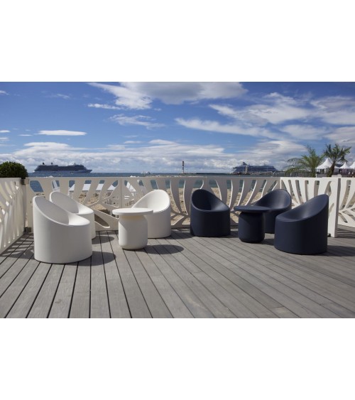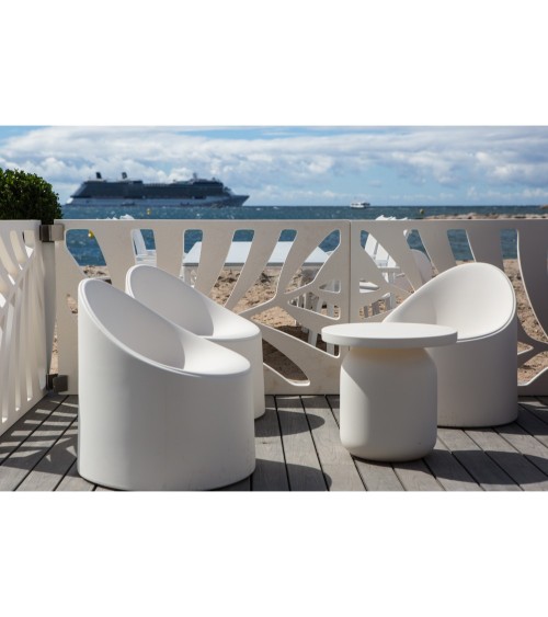 La lounge-chair Bay a été étudiée pour envelopper commodément grâce à la grande assise. Légère, harmonieuse, essentielle, aux dimensions contenues, caractérisées par un signe sur les contours et sur l'arrière du dossier, qui calque la couture dune découpe de couturière, comme pour rappeler le rembourrage dun fauteuil en tissu. Couleur blanc Designer : Raffaella Mangiarotti