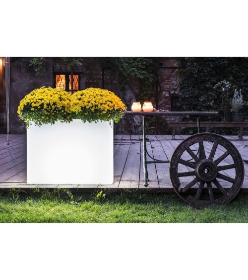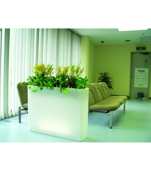 Un pot pour l'extérieur long et mince peut créer des espaces et en diviser d'autres : une séparation verte, comme une porte entre l'intérieur et l'extérieur. Adorable pot en resine pour améliorer la déco jardin. Couleur neutre. Système d'éclairage IP67 avec câble noir de 3 mt. et connecteur antisplash bipolaire shuko - alimentation 220-240V - avec empoule fluorescente à basse consommation d'énergie 20W (E27)