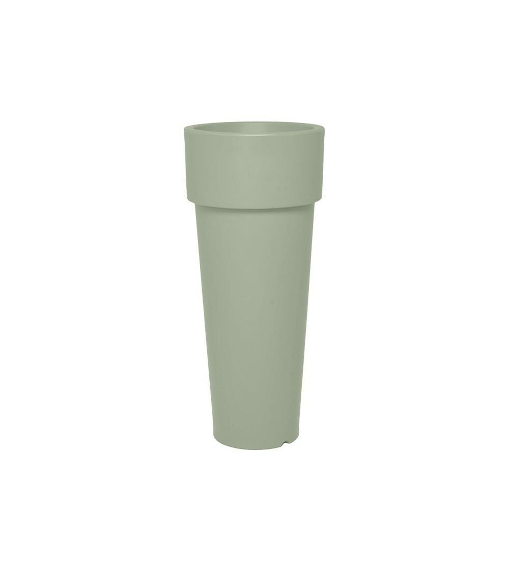 Mouvement vertical, dans un jeu de proportions et de déformations, le vase à double bord est réinterprété, il se lève, s'étire. Marcantonio Light est une ligne de pots, disponibles aussi dans la version lumineuse et conçue par Serralunga pour sa gamme de jardin et ameublement design. Couleur sauge.