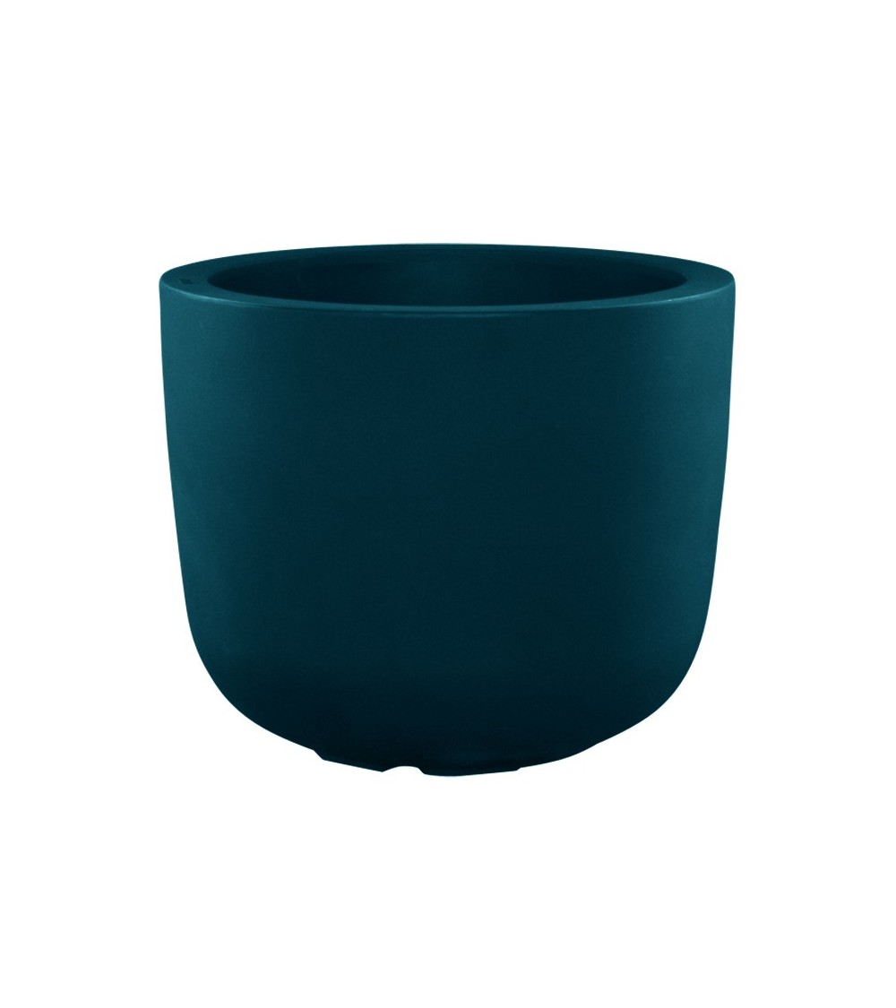 Un pot pour l'extérieur d'inspiration archaïque, comme les bols sculptés dans le bois. Des lignes pures pour un pot au design simple et discret, respirant déjà l'odeur du classique. Cup, ameublement design par Naoto Fukasawa pour Serralunga. Couleur vert paon
