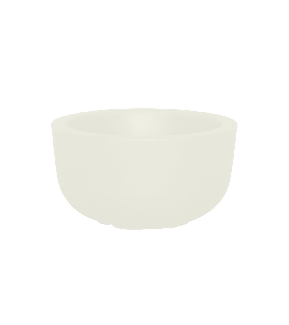 Un pot pour l'extérieur d'inspiration archaïque, comme les bols sculptés dans le bois. Des lignes pures pour un pot au design simple et discret, respirant déjà l'odeur du classique. Cup, ameublement design par Naoto Fukasawa pour Serralunga. Couleur Blanc
