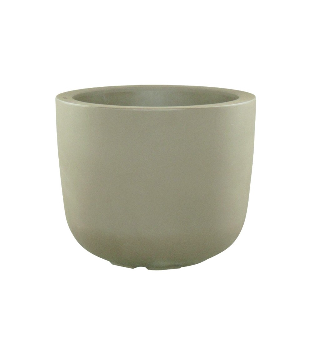 Un pot pour l'extérieur d'inspiration archaïque, comme les bols sculptés dans le bois. Des lignes pures pour un pot au design simple et discret, respirant déjà l'odeur du classique. Cup, ameublement design par Naoto Fukasawa pour Serralunga.Couleur Sauge