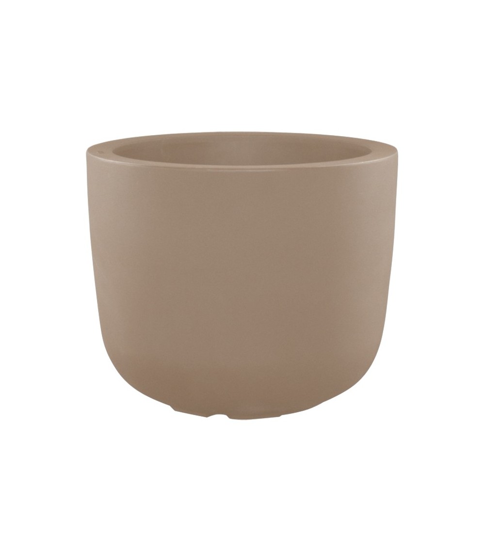 Un pot pour l'extérieur d'inspiration archaïque, comme les bols sculptés dans le bois. Des lignes pures pour un pot au design simple et discret, respirant déjà l'odeur du classique. Cup, ameublement design par Naoto Fukasawa pour Serralunga. Couleur gris tourterelle