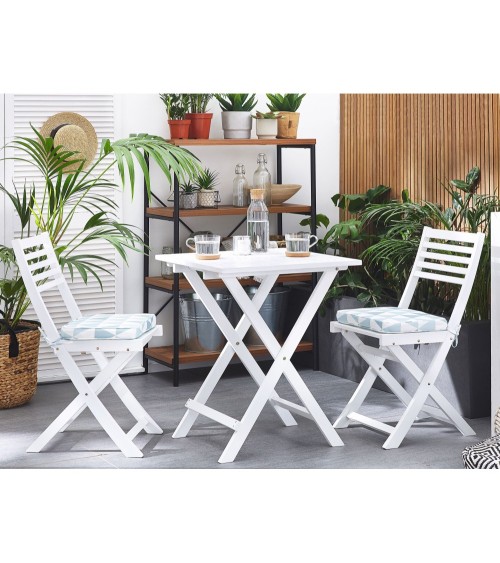 Ce lot de 2 coussins pour chaises de jardin augmentera le niveau de votre confort. Dotés de motifs géométriques bleus et blancs, ces coussins sont équipés de sangles de fixation pratiques et d'un rembourrage agréable. Les housses en tissu polyester résistant à l'eau et anti-UV, sont amovibles et lavables en machine. Ajoutez a votre terrasse ou jardin un peu plus de couleurs avec ses coussins déco d'extérieur pratiques et confortables.