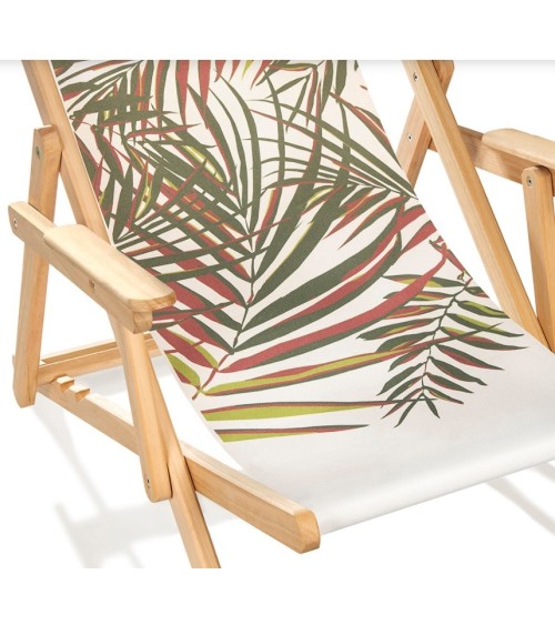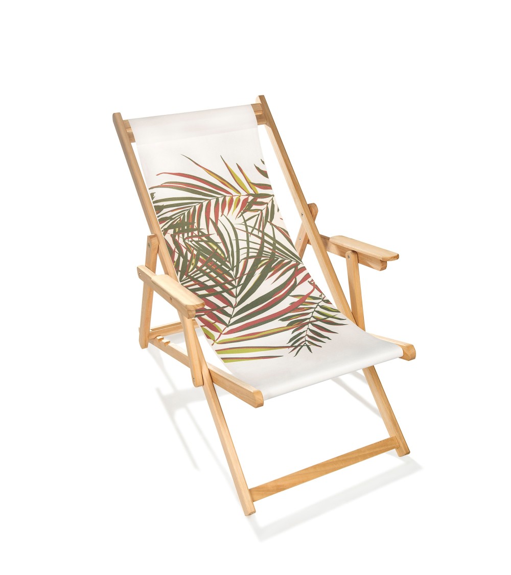 Produit à usages professionnels et particuliers. Chilienne de jardin pliante, avec accoudoirs, en toile 100% coton blanc écru avec motif jungle vert/rouge/vert pomme et chassis 100% bois d'eucalyptus PEFC. Dossier réglable 4 positions. Toile amovible. Fabrication artisanale. Recyclable.DIMENSIONSDépliée : L 96 x l 61 x H 102 cmPliée : L 61 x l 6 x H 132 cmHauteur sol-assise : 46 cmHauteur sol-accoudoirs : 60 cmChoisissez les chiliennes professionnelles LONA pour aménager votre salle de restaurant ou votre terrasse.