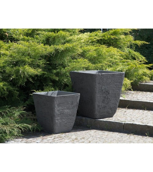 Le cache-pot en forme élégante sintégrera aussi bien à lintérieur quà lextérieur. Au fond se trouve une ouverture de 2 cm de large pour lirrigation et peut être ouverte ou fermée selon le besoin de vos plantes. Le cache-pot peut être percé si nécessaire. Le matériau se compose d'un mélange de pierre, de polyrésine (pierre artificielle) et de fibre de verre et est donc extrêmement robuste, résistant aux UV, facile à entretenir.