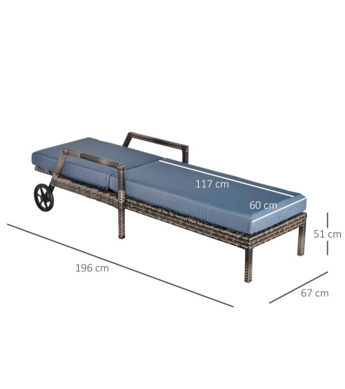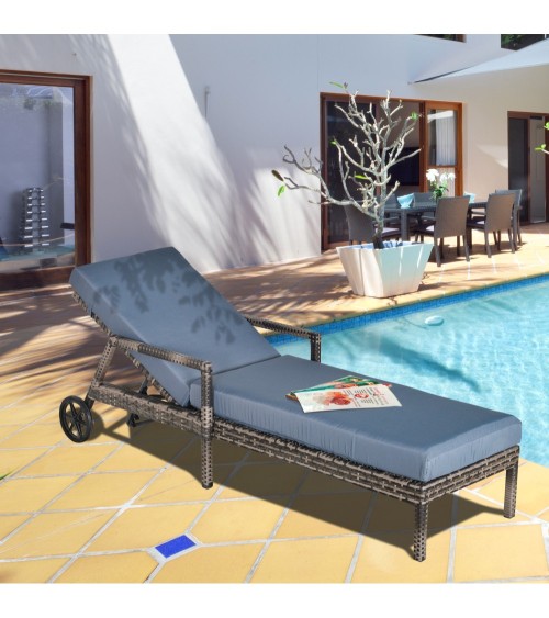 Ce superbe bain de soleil grand confort (matelas épais inclus) sublimera votre extérieur ! Doté d'un revêtement très élégant en résine tressée imitation rotin gris et très confortable (dossier inclinable multipositions, accoudoirs, etc...), vous pourrez profiter pleinement des belles journées ! Caractéristiques : - Bain de soleil style colonial coloris gris : mobilier extérieur qui sublimera votre jardin, terrasse, balcon- Bain de soleil grand confort avec matelas épais inclus- Structure robuste en métal époxy anticorrosion et revêtement en résine tressée imitation rotin : matériaux de qualité résistant aux rayons UV, à l'humidité et ne nécessitant pas d'entretien particulier- Dossier inclinable multipositions (5 au choix) afin de s'adapter à toutes les situations : lecture, sieste, bain de soleil- 2 grandes roues arrières pour faciliter son déplacement si nécessaire- Intégralité des coussins zippés imperméables, déhoussables pour un usage, entretien pratique et facile- Garnissage mousse haute densité 800 g/m² du matelas avec housse polyester agréable au toucher- Idéal pour installation sur une terrasse, autour d'une piscine, sur un balcon, dans le jardin, etc...- Montage facile, rapide à l'aide du manuel d'assemblage illustré fourni- Recommandation : veuillez utiliser une housse de protection si inutilisation afin d'optimiser sa durée de vie Spécifications : - Couleur principale : gris- Matériaux principaux : métal époxy anticorrosion, résine tressée PE imitation rotin, polyester, garnissage mousse- Dim. totales : 196L x 67l x 51H cm- Dim. assise (coussin d'assise non-inclus) : 117L x 60l x 28H cm- Dim. dossier : 77L x 54l cm- Hauteur accoudoirs (jusqu'au sol) : 51 cm- Ép. coussin d'assise : 8 cm- Ø roues : 21 cm- Charge max. reco. : 160 Kg- Livraison effectuée en 1 colis- Réf. : 862-033GY