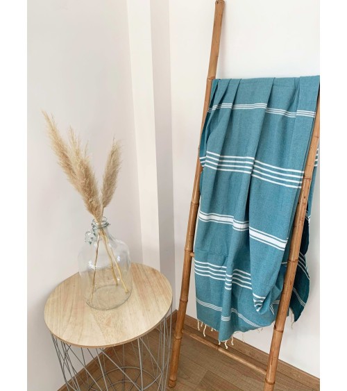 Fouta traditionnelle kolora lake bleu canard 100 x 200