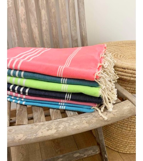 Cette Fouta paréo vous accompagnera dans toutes vos sorties à la plage ,à la piscine et même dans votre salle de bain.Très fine et légère , elle est pratique et très tendance grâce à sa finition avec franges.Idéale pour les vacances car peu encombrante pour les valises cabine. Légère et facile à emporter lors de vos activités extérieures , elle se décline dans une vaste sélection de coloris et rayures.