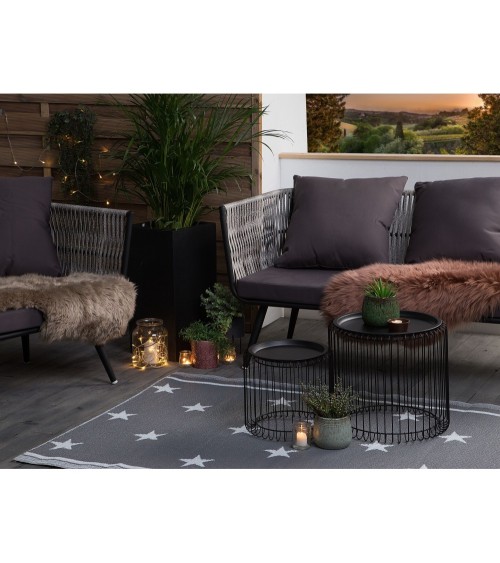 Parfait pour rajouter du style à votre espace extérieur, ce tapis résistant peut être utilisé sans aucun problème sur votre terrasse ou jardin. Avec son motif d'étoilé tendance de couleur gris foncé, il apportera une vague de joie à votre espace extérieur. Grâce à ses matériaux durables, ce joli tapis conserve sa qualité et peut être utilisé toute l'année, aussi bien dehors que à l'intérieur de votre maison.