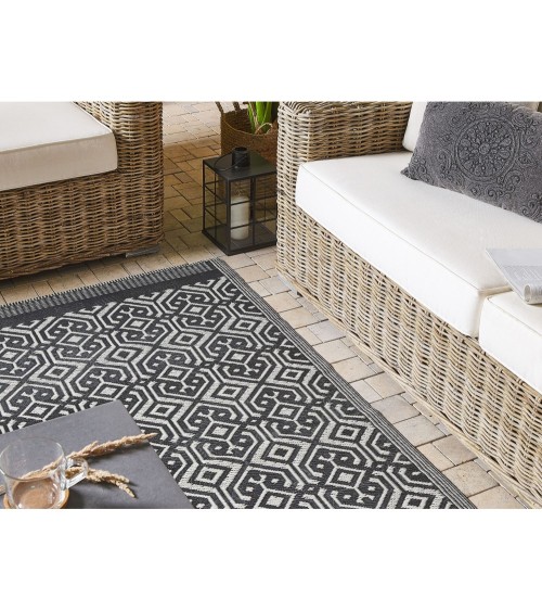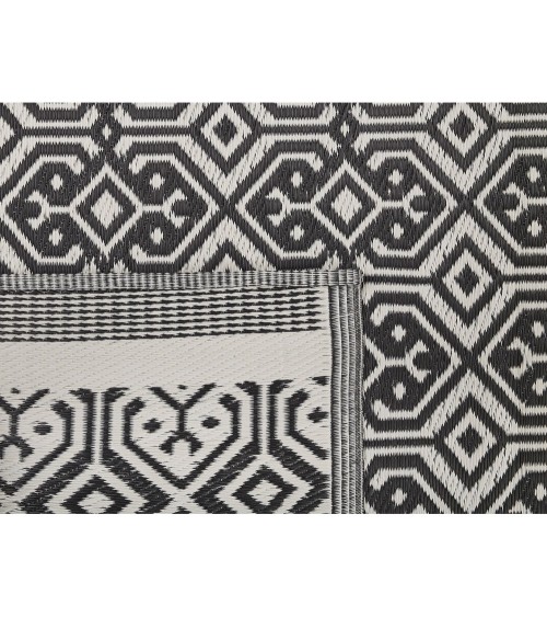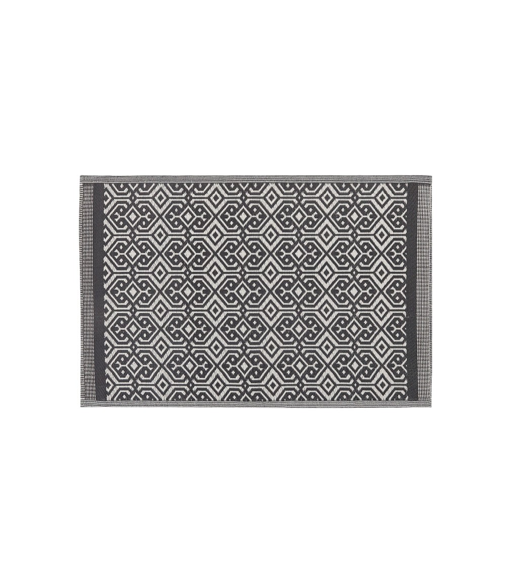 Ajoutez un peu de caractère unique à votre espace extérieur ou intérieur, avec ce tapis très décoratif au motif géométrique c'est plus que facile. Fabriqué à partir de polypropylène 100% recyclé, il est à la fois ultra résistant et écologique. Son design moderne et boho en fait un excellent accessoire à placer entre les fauteuils et un canapé sur la terrasse ou le balcon. Mais, pendant l'hiver, il fera aussi un splendide ajout à votre intérieur, par exemple dans un salon, cuisine ou salle de bains. Ultra pratique, facile à emporter et très accrocheur, ce tapis s'adapte à tous les besoins.