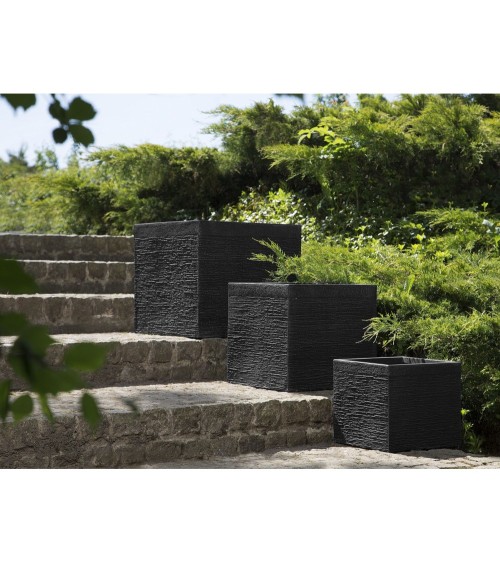 Ce cache-pot en forme de cube sintégrera aussi bien à lintérieur quà lextérieur. Au fond du pot se trouve une ouverture qui peut être ouverte ou fermée selon le besoin de vos plantes. Le cache-pot peut être percé si nécessaire. Le matériau se compose d'un mélange de fibre dargile et de fibre de verre et est donc extrêmement robuste, résistant aux UV, facile à entretenir.