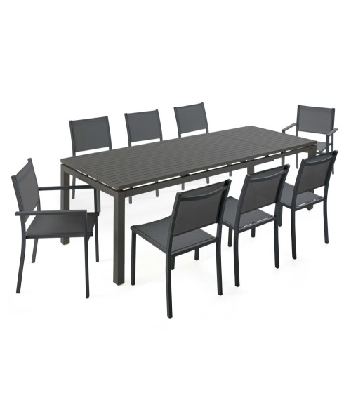 Table de jardin extensible 8 places en aluminium noir 180/240 cm