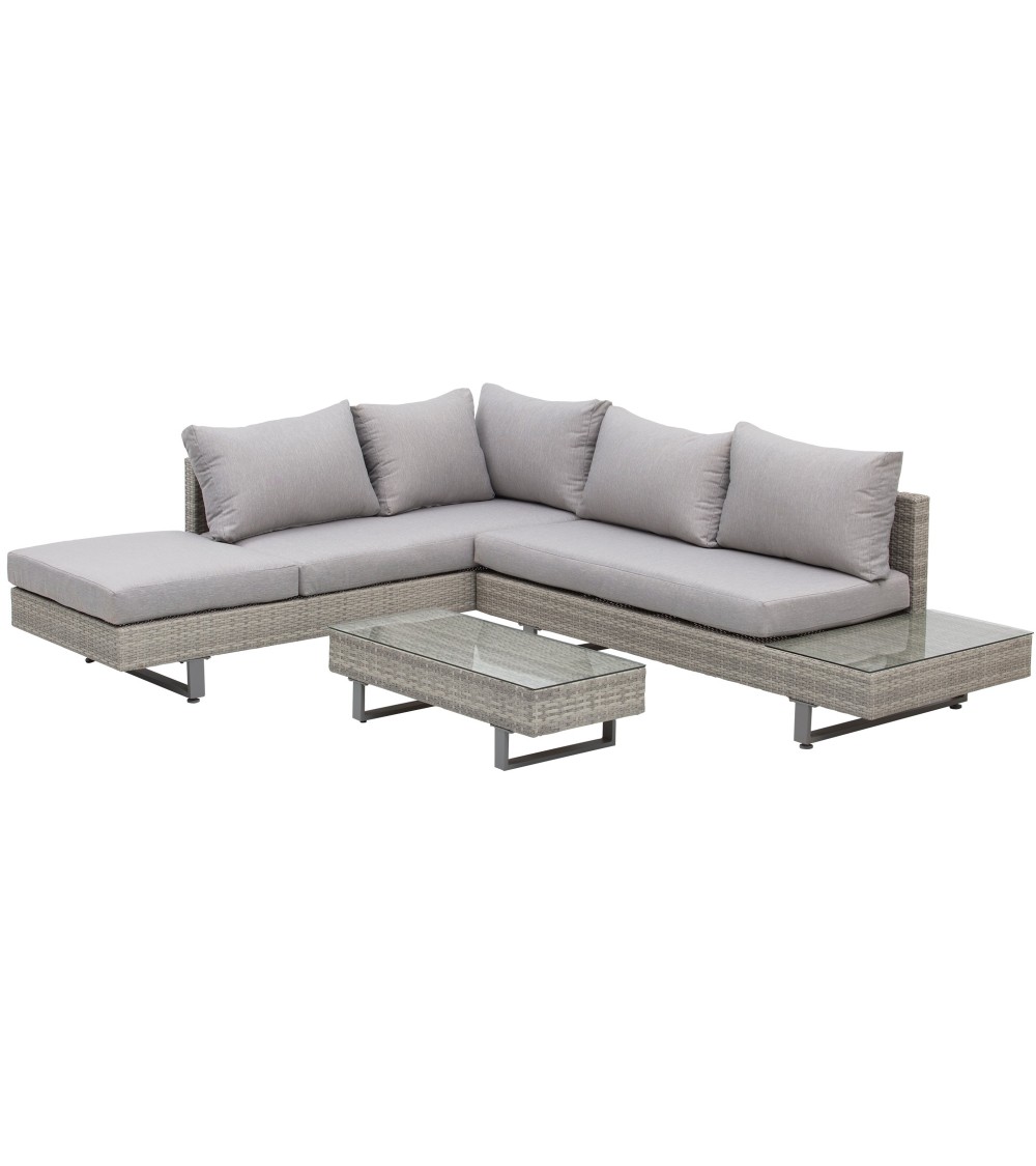 Ensemble salon de jardin d'angle 5 places design contemporain gris