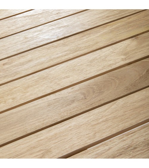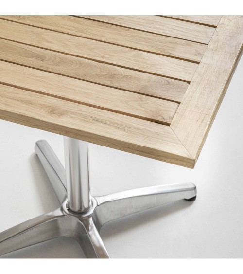 Avec son design mêlant matériaux modernes et naturels, la table de jardin Times Square présente un look tendance qui s'intègre aisément avec votre extérieur. Son pied en aluminium et son plateau en bois de frêne en font un mobilier de terrasse léger et ultra résistant, capable de supporter une utilisation fréquente sans prendre une ride. Le bois est traité avec un vernis protecteur afin d'en optimiser la durée de vie. Il est conseiller d'abriter la table en hiver ou par temps humide.Caractéristiques de la table de jardin Times Square :Table d'extérieur carrée Structure en aluminium Cadre et lattes du plateau en bois de frêne Finition vernis protecteur pour le bois Finition anodisée sur la structure Patins anti-dérapant en PEHD Entretien et lavage rapides Notice et visserie pour le montage du piedDimensions de la table de jardin Times Square :Longueur : 70 cm Largeur : 70 cm Hauteur : 70 cmColis :2 cartons Poids de la table : 7 kg