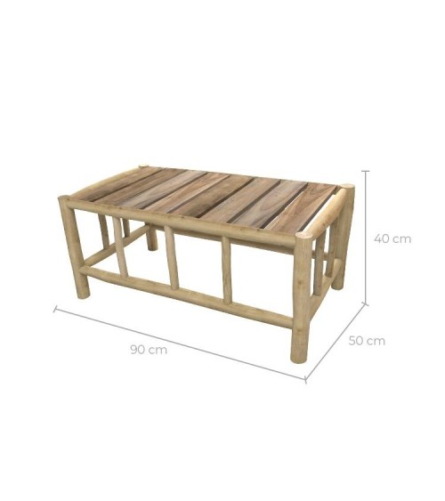 Poids : 10.4kg Dimensions: - Longueur : 90 cm- Largeur : 50 cm- Hauteur : 40 cmEntretien : Nettoyer avec un chiffon doux imbibé d'un peu d'eau savonneuse. Rincer et sécher immédiatement. Pour protéger le teck, vous pouvez l'huiler avant exposition.Materiaux : Branche de teckMontage : Livré montéInformations : Poids max supporté : 50 kgUsage intérieur et extérieurLa couleur de bois utilisé pour la fabrication de cette table basse peut varier d'un produit à un autre car chaque branche de teck est unique et dépend de multiples facteurs pouvant influer sur le coloris final (noeuds, plan de coupe, séchage...).Informations colis : 93 x 53 x 44 cm