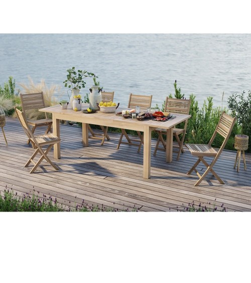 Poids : 48kg Dimensions: - Longueur : 180/240 cm- Profondeur : 90 cm- Hauteur : 75 cm- Epaisseur du plateau : 2,5 cmEntretien : Vernir la table avec de l'huile de teck spéciale terrasse avant 1ere utilisationRenouveler l'opération une fois par an, poncer légèrement au préalablePour un entretien quotidien, une éponge douce humide suffit. En cas de tache, utiliser un peu de savon noir additionné d'eau tiède. Rincer et sécher.Materiaux : Teck en bois massifMontage : A assembler, notice incluseInformations : Table extensibleInformations colis : 182 x 92 x 23 cm