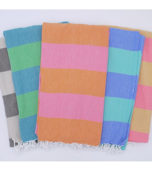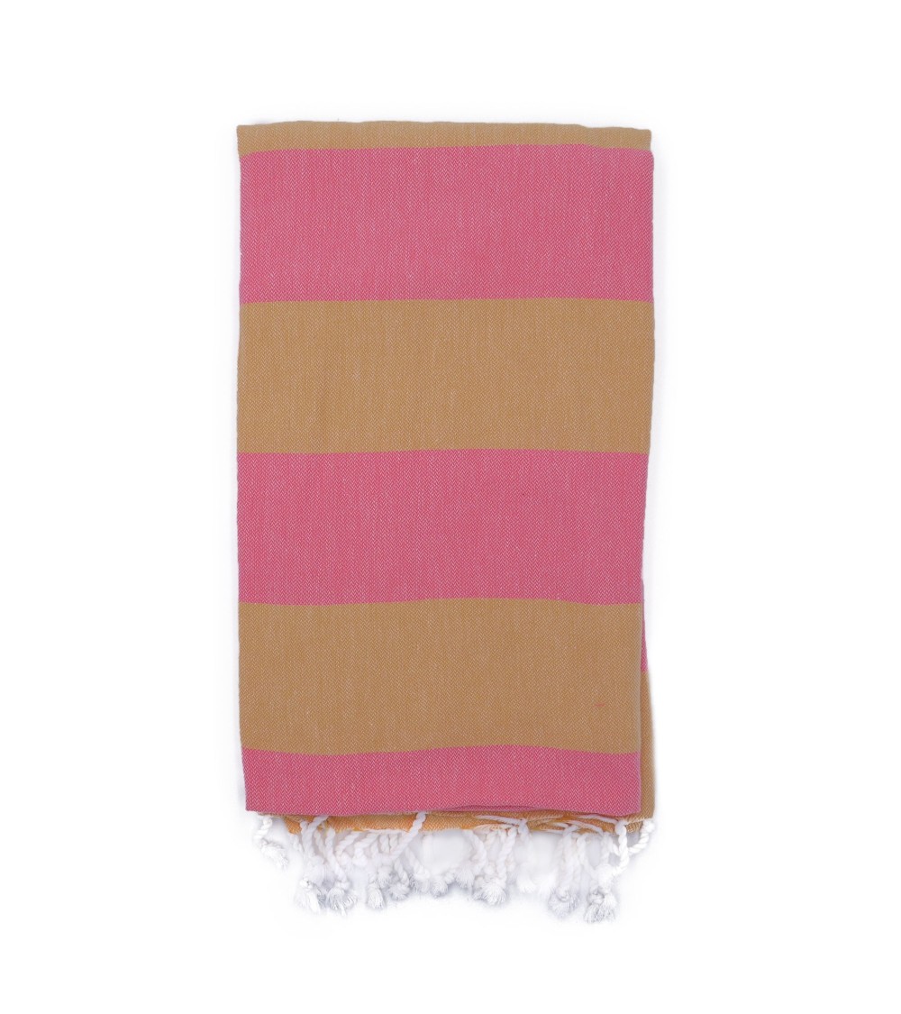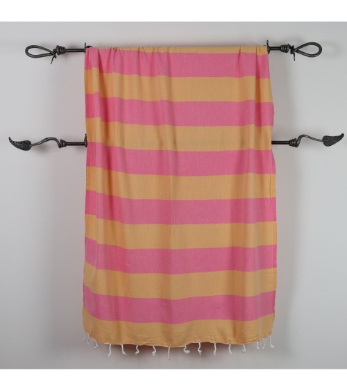 Fouta 100% coton avec des larges bandes rouilles et oranges. Elle remplace la serviette de bain en éponge en étant plus lègère et absorbante.Simple et élégante, la fouta est un drap de bain tendance et chic, idéal pour la plage, le spa, le hammam, ...Conseils d'entretien de la fouta :Faites tremper votre fouta dans de leau froide avant le premier lavage.Un lavage à 30°C est préférable.Pour que votre fouta gagne en souplesse et douceur, lavez-la régulièrement.